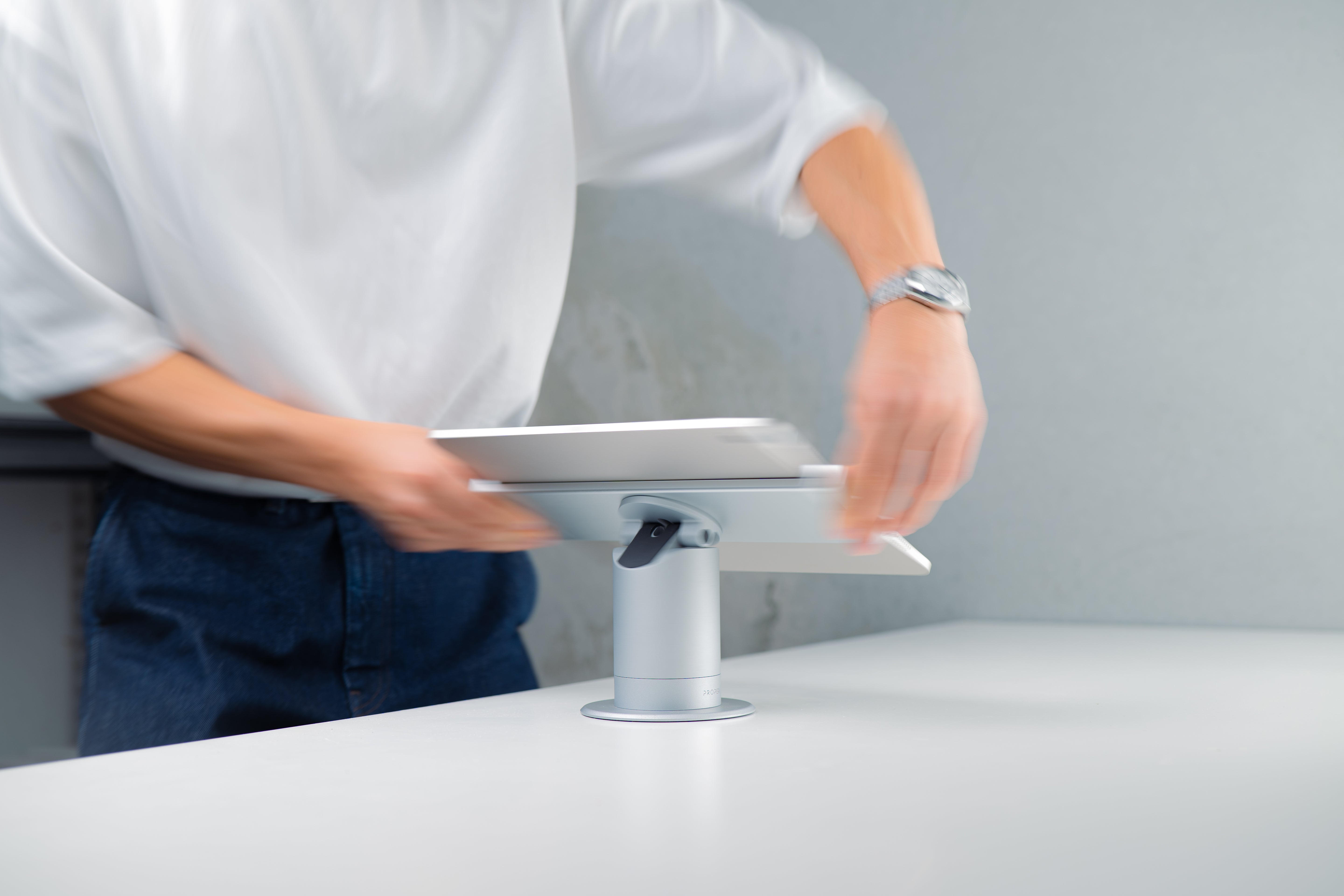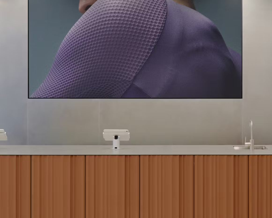 With flexible mounting options for both wall and countertop setups, this sleek, low-profile stand provides a versatile solution for any tablet.